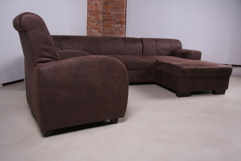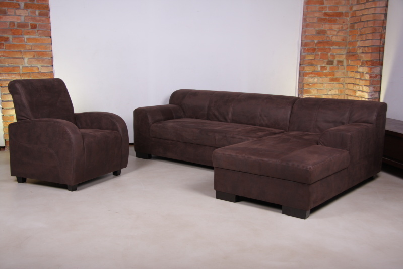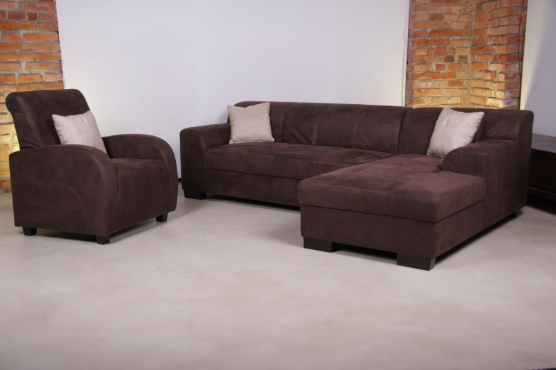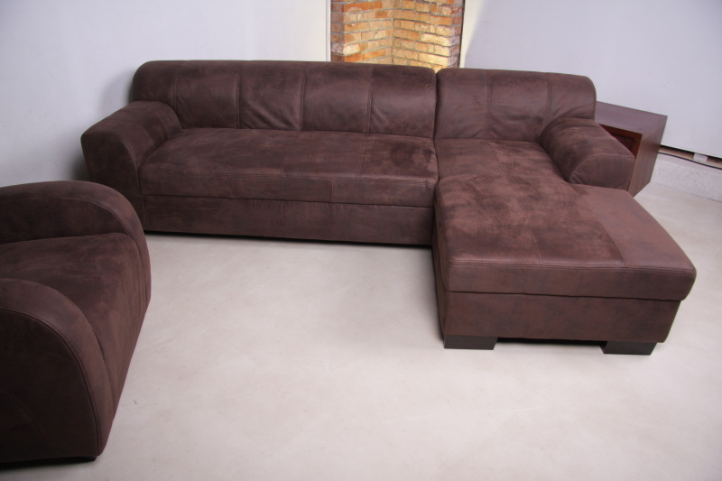 Čalouněná sedací souprava ve tvaru elka s křeslem